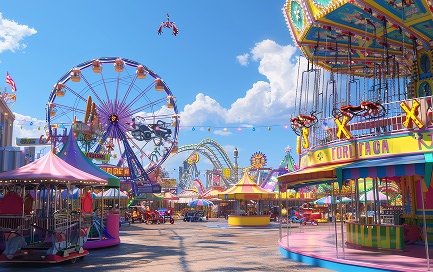 Step into a place where every moment is filled with joy, color, and adventure. Whether you're soaring through the sky on a roller coaster, dancing to live music under the stars, or sharing cotton candy and laughs with loved ones.